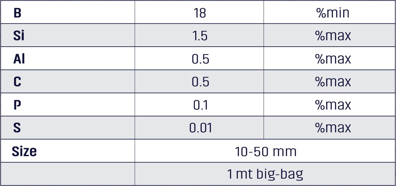Ferro Boron is typically added to steel to provide a solid form and high strength. Ferro Boron has been called one of the most useful "precious ferro alloys". One of the biggest contributions of the Ferro Boron added alloy is that it adds a remarkable degree of washing resistance to the product.