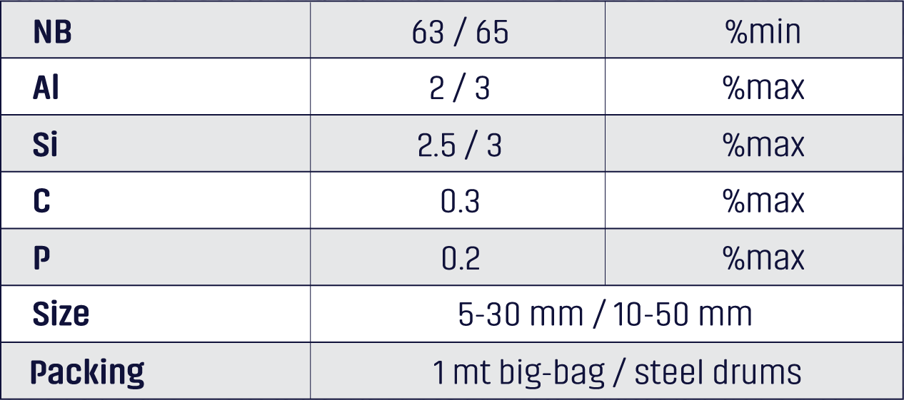 Ferro Niobium is one of the main products used in the alloying of High Strength-Low Alloy (HSLA) Steel. In the process of alloying with steel, Ferro Niobium is added to the molten steel before casting. Ferro Niobium has been called a very popular material since it started to be used as a product that increases strength and hardness, while reducing the weight of the alloy.